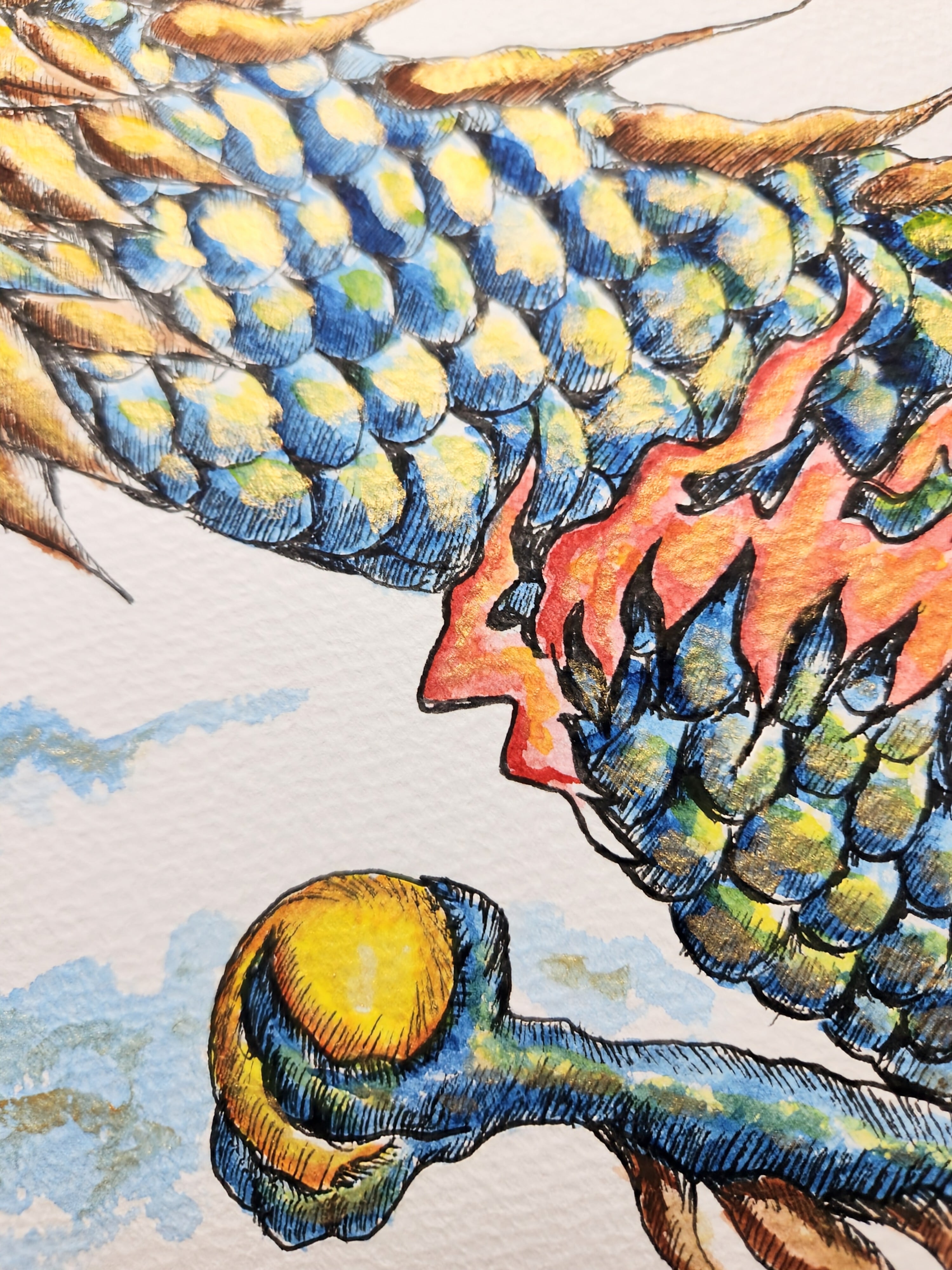 線を丁寧に重ね、透明水彩で流れを表現し、